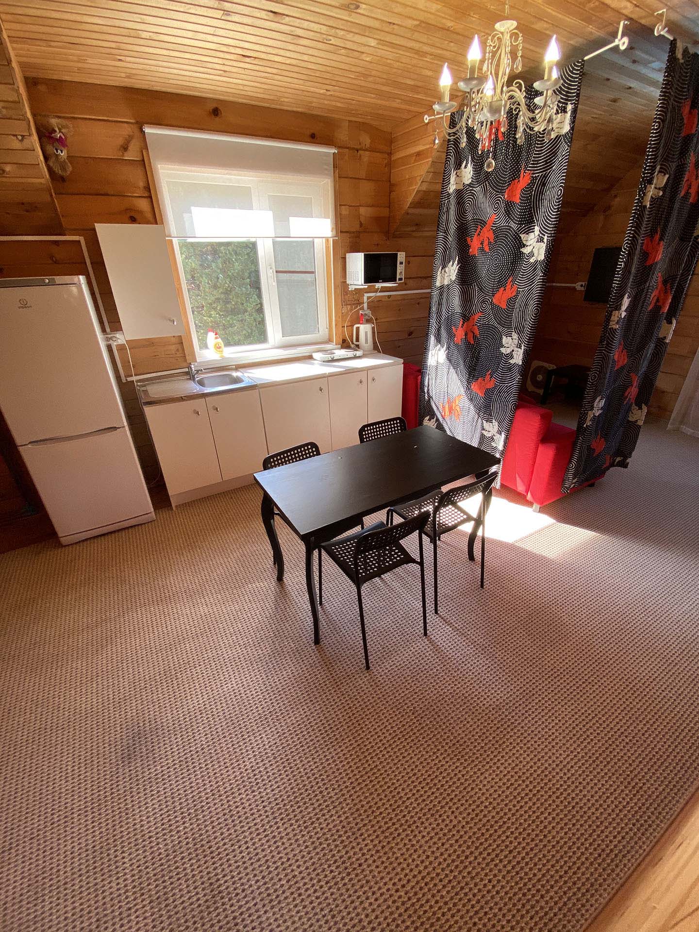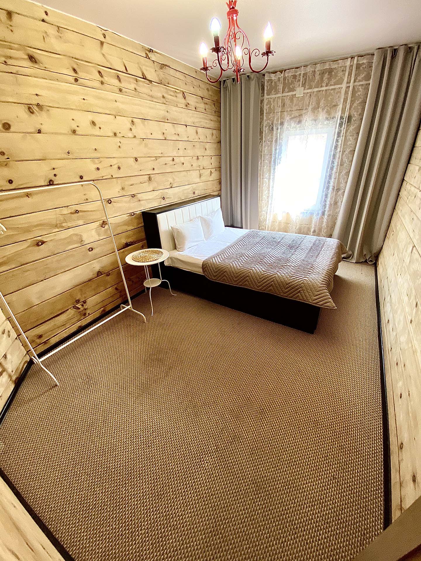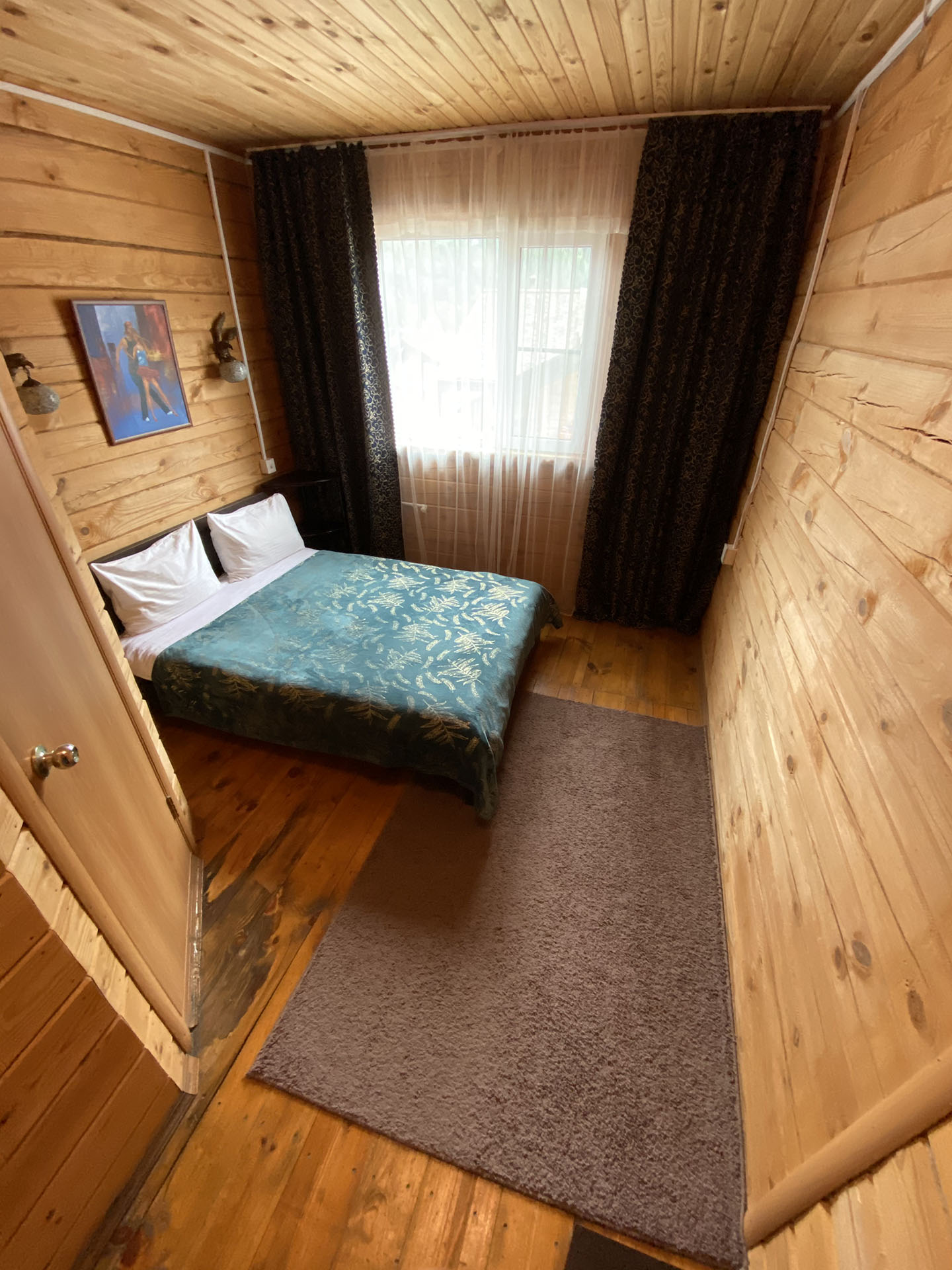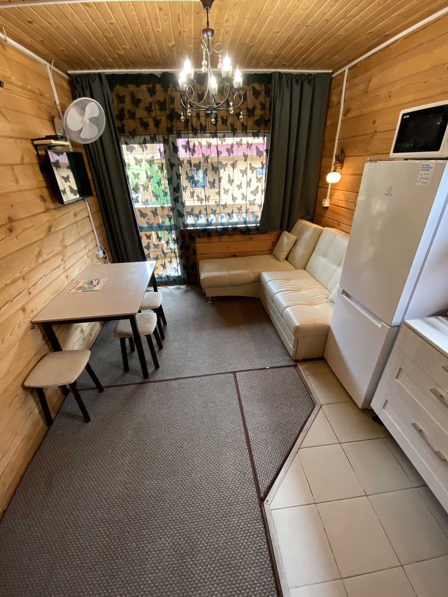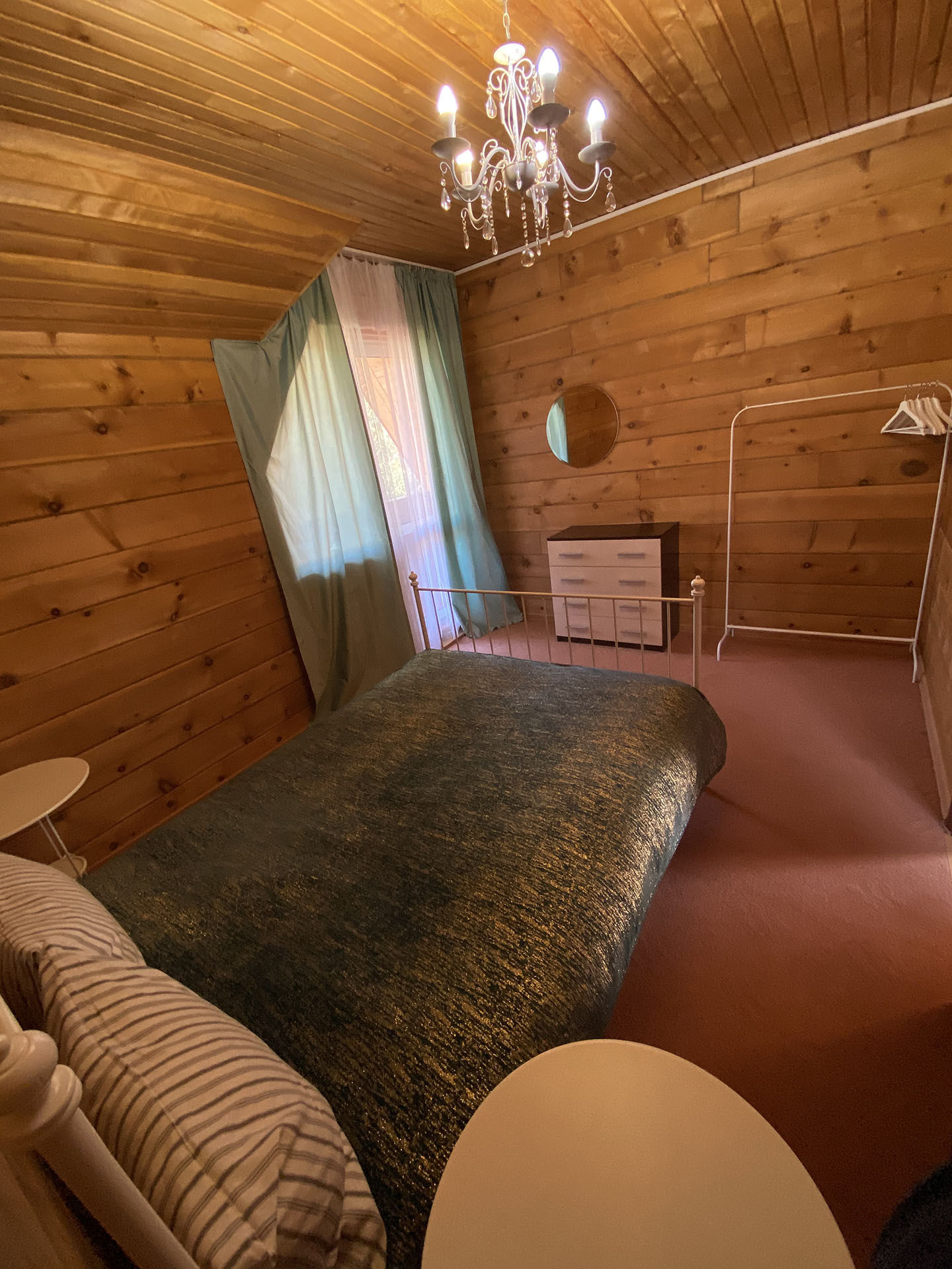 Четырехместный номер, спальня (двуспальная кровать) и зал (раскладной двухместный диван) также в номере (холодильник, чайник, микроволновая печь, обеденный стол), ванная комната (душевая кабина, раковина, унитаз, фен), тв – НТВ плюс (большой телевизор с плоским экраном), высокоскоростной Wi-Fi, собственный огороженный двор с садовой мебелью, допускается размещение с животными.