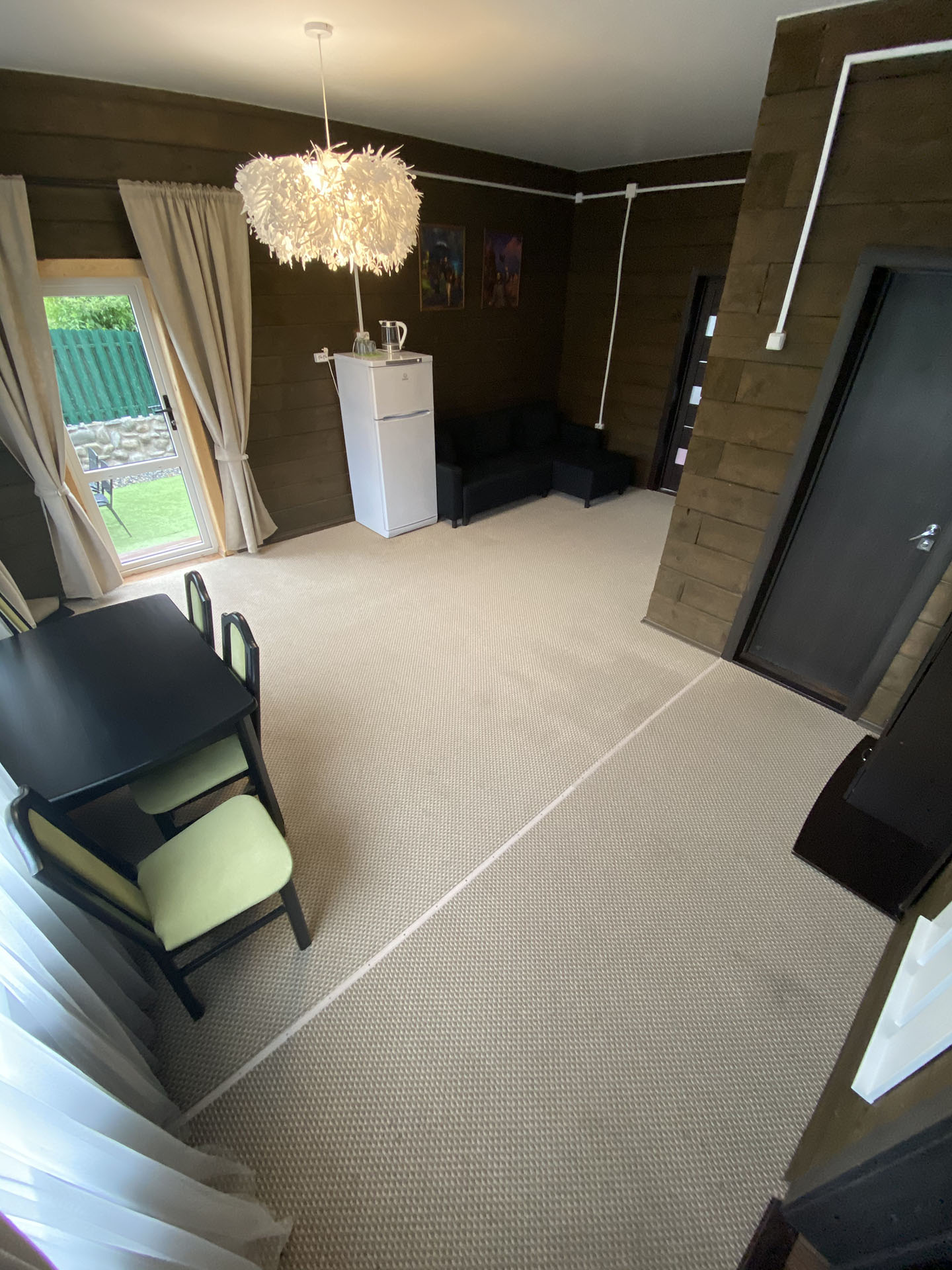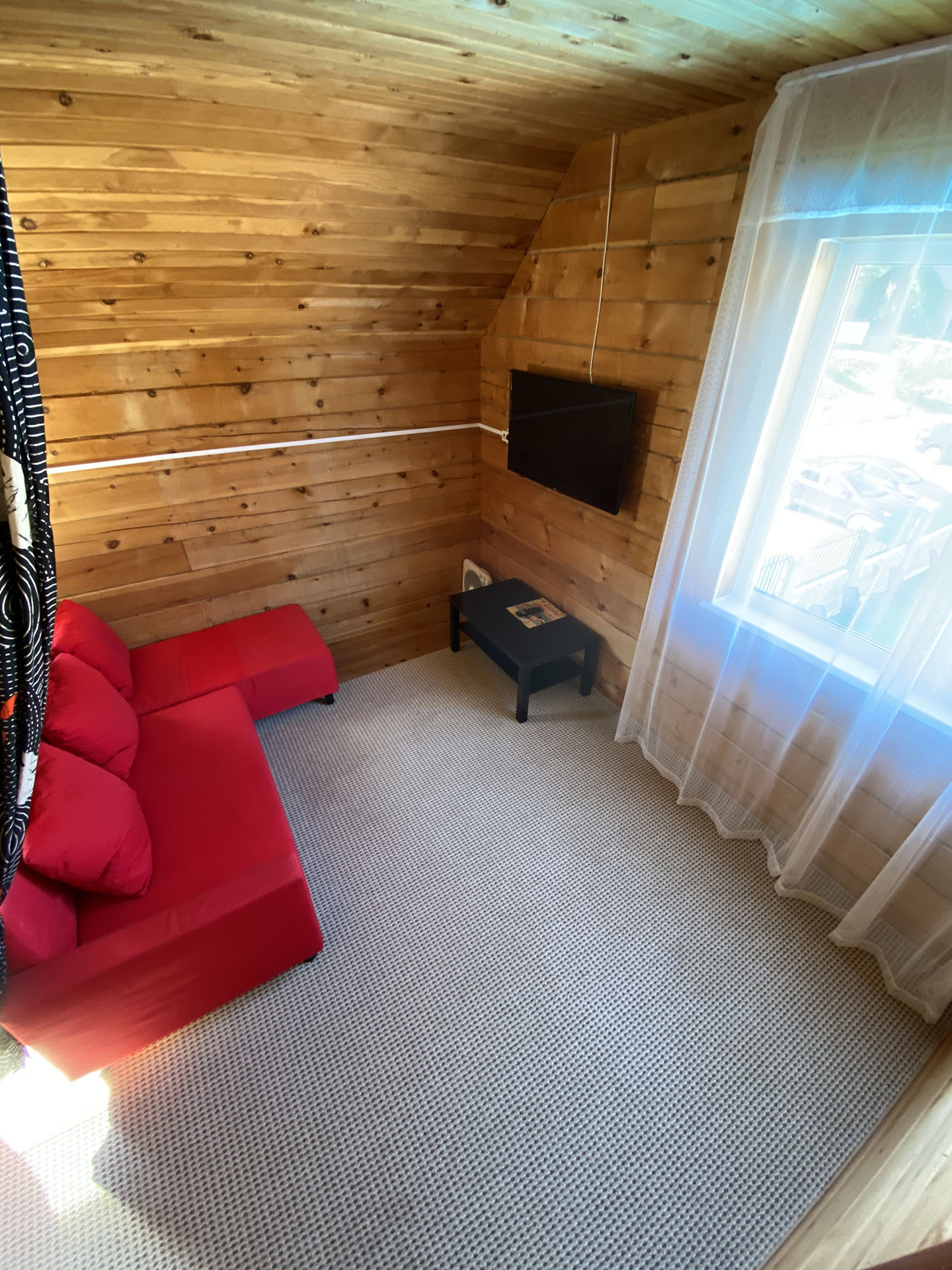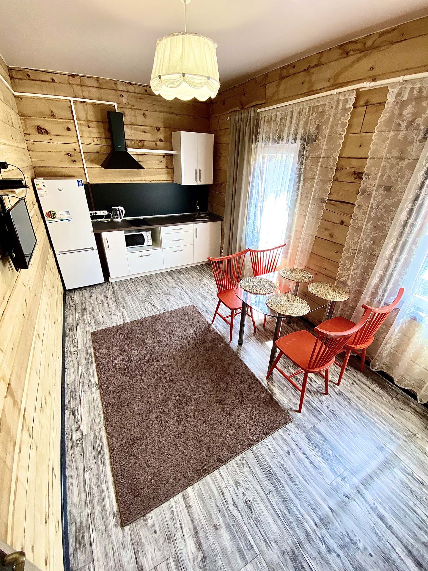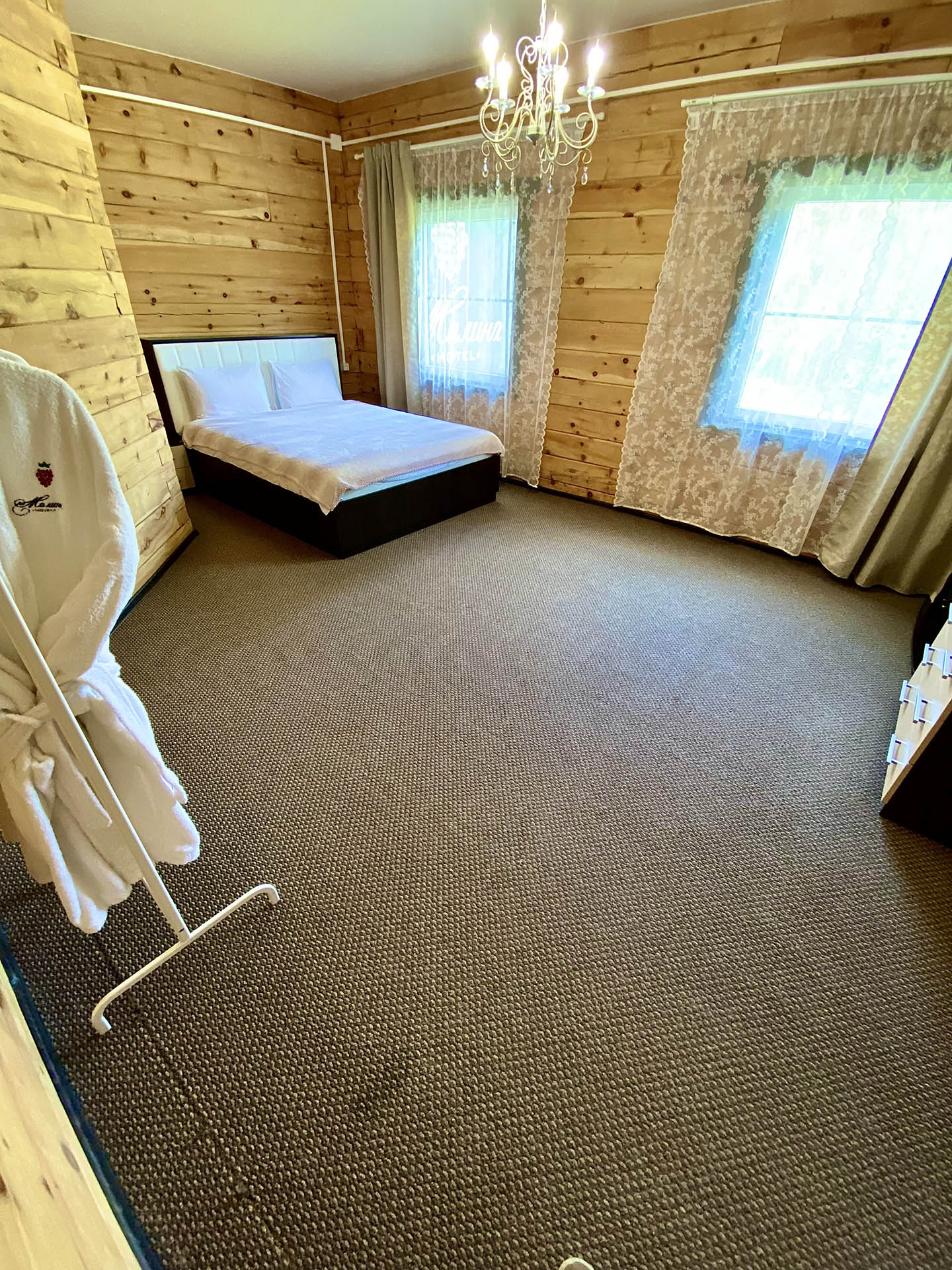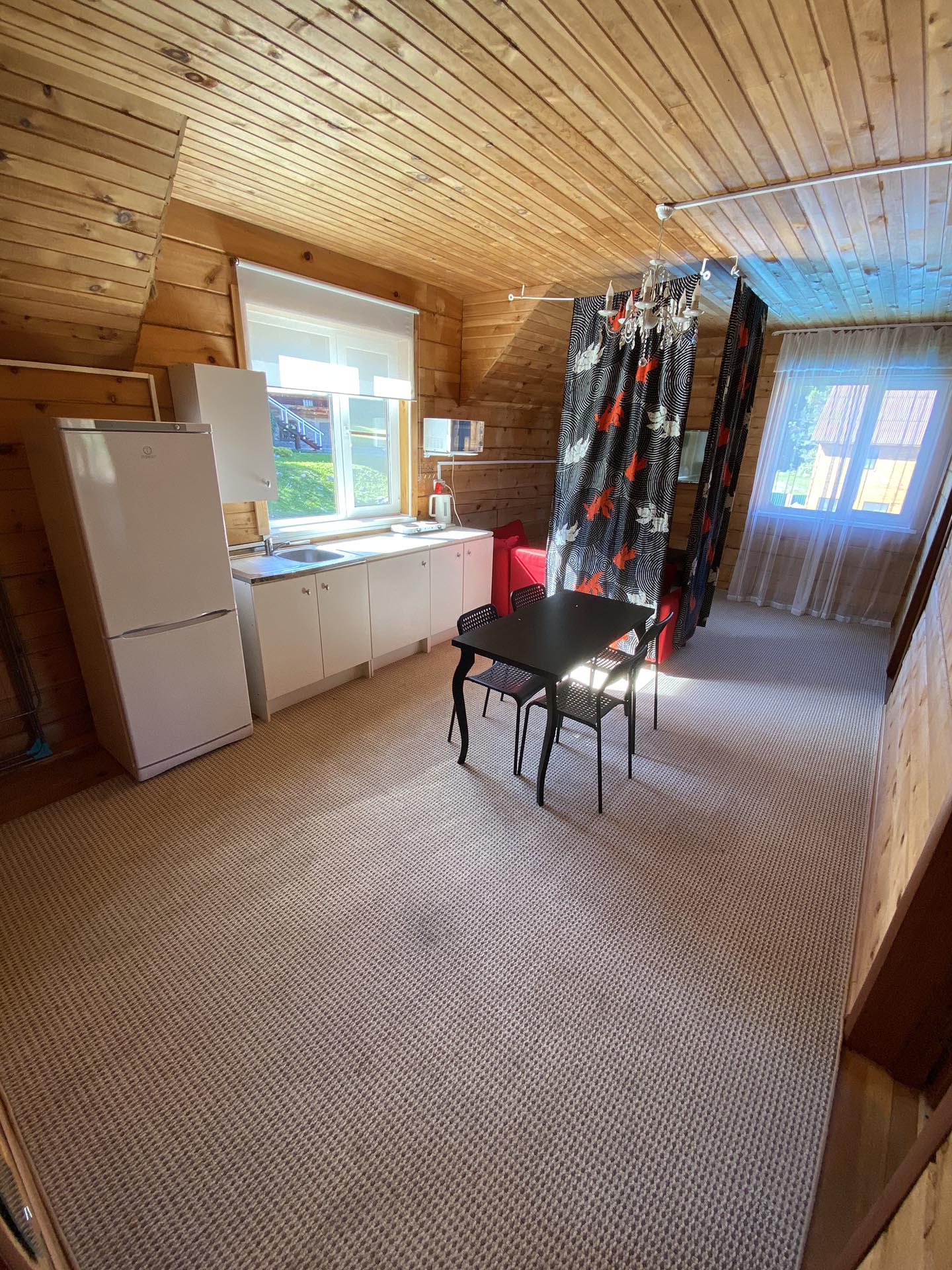 Четырехместный номер, спальня (двуспальная кровать) и зал (раскладной двухместный диван) также в номере (холодильник, чайник, микроволновая печь, обеденный стол), ванная комната (душевая кабина, раковина, унитаз, фен), тв – НТВ плюс (большой телевизор с плоским экраном), высокоскоростной Wi-Fi, собственный огороженный двор с садовой мебелью, допускается размещение с животными.