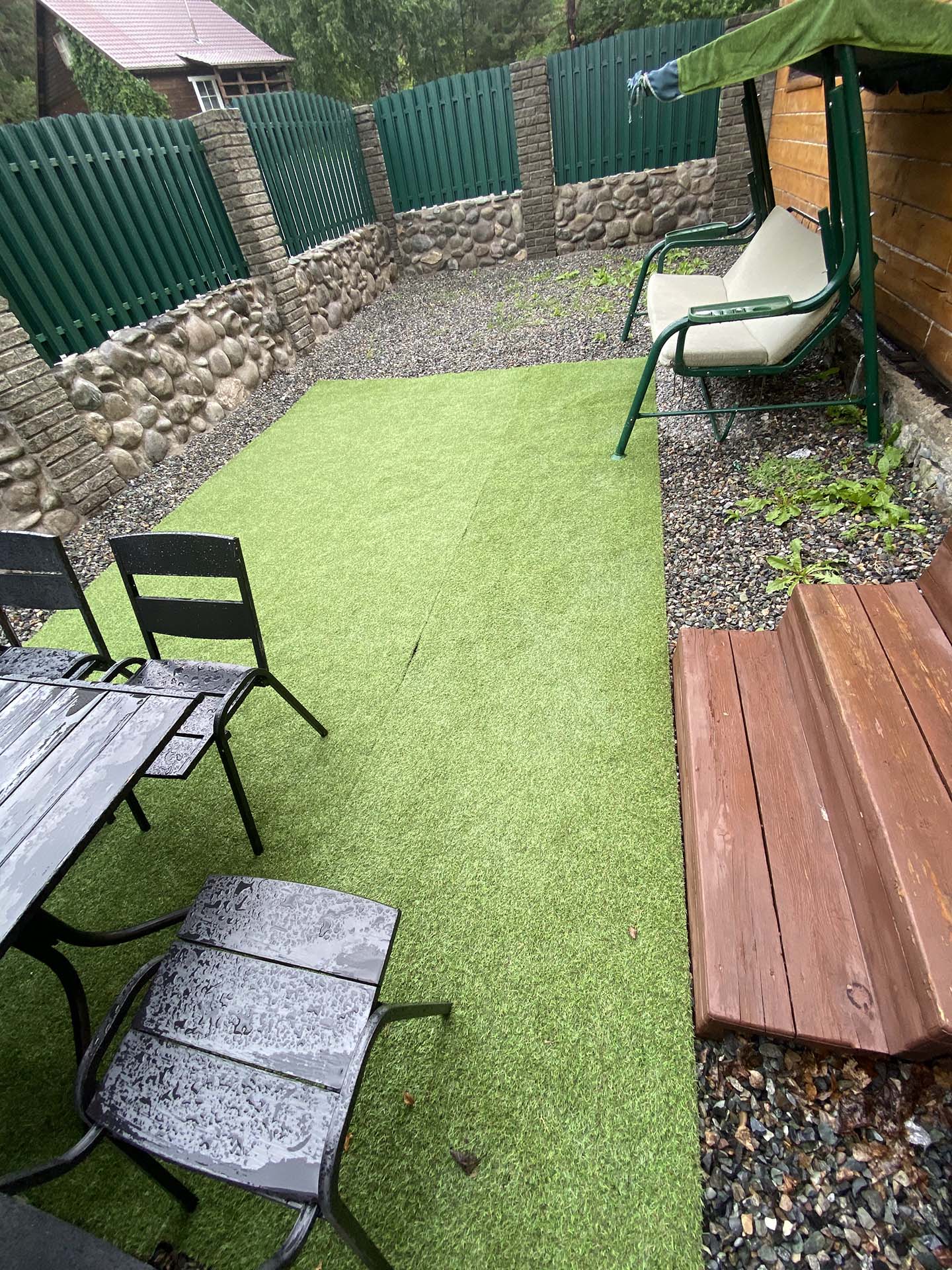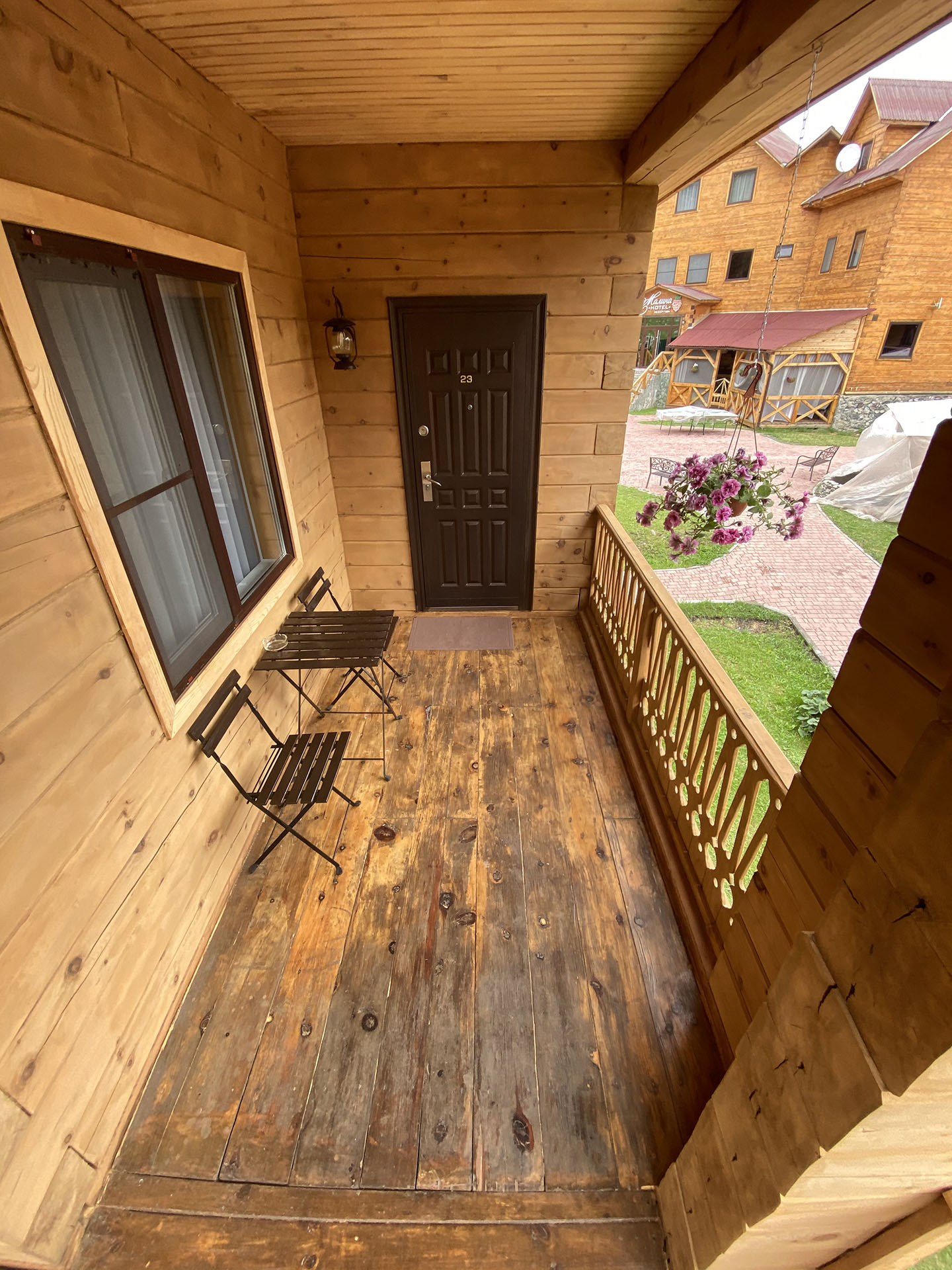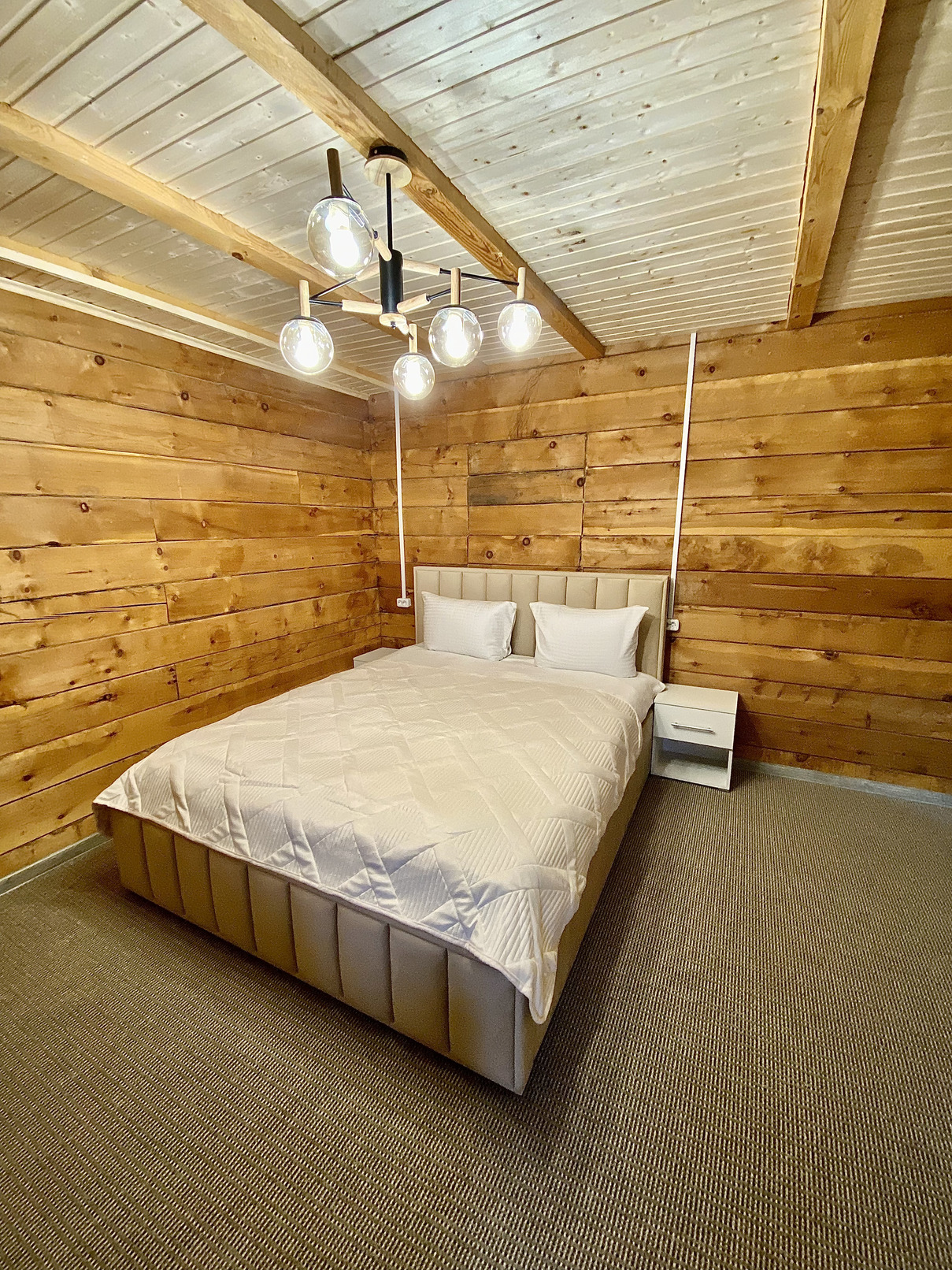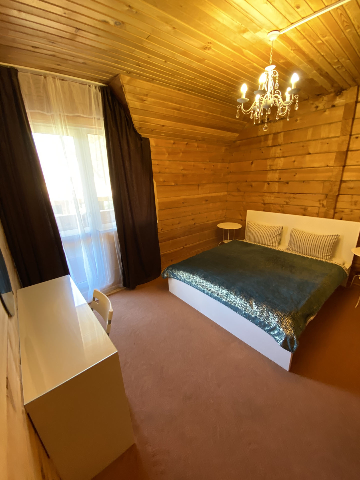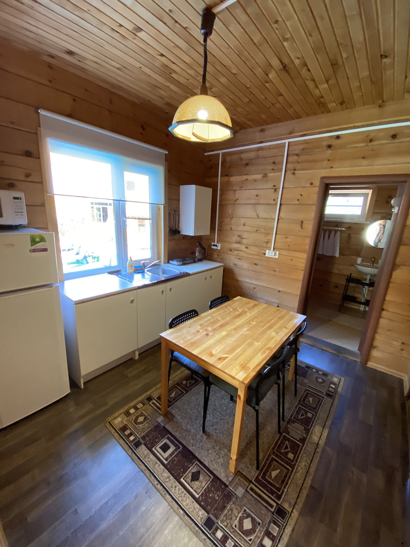 Четырехместный номер, спальня (двуспальная кровать) и зал (раскладной двухместный диван) также в номере (холодильник, чайник, микроволновая печь, обеденный стол), ванная комната (душевая кабина, раковина, унитаз, фен), тв – НТВ плюс (большой телевизор с плоским экраном), высокоскоростной Wi-Fi, собственный огороженный двор с садовой мебелью, допускается размещение с животными.