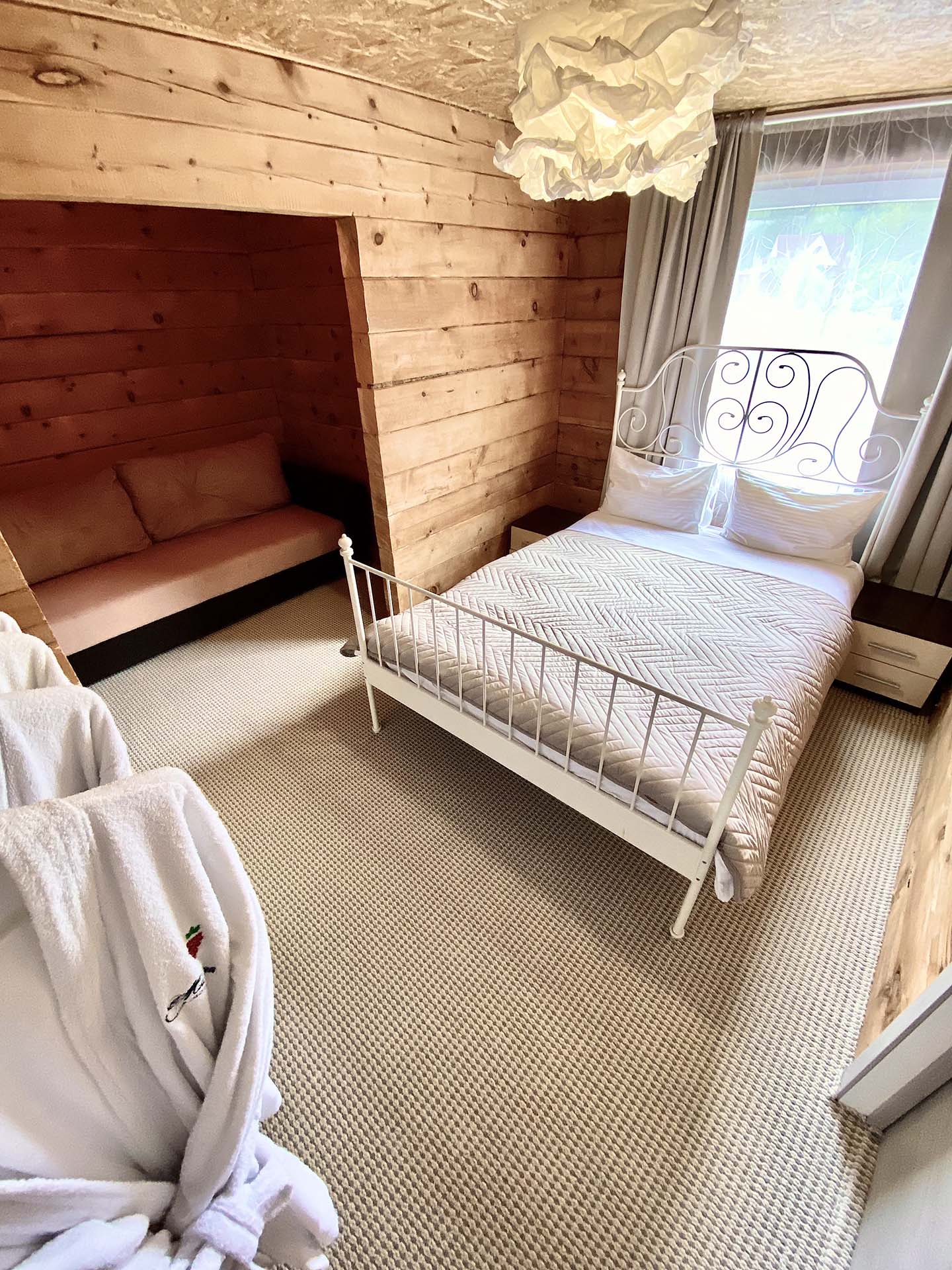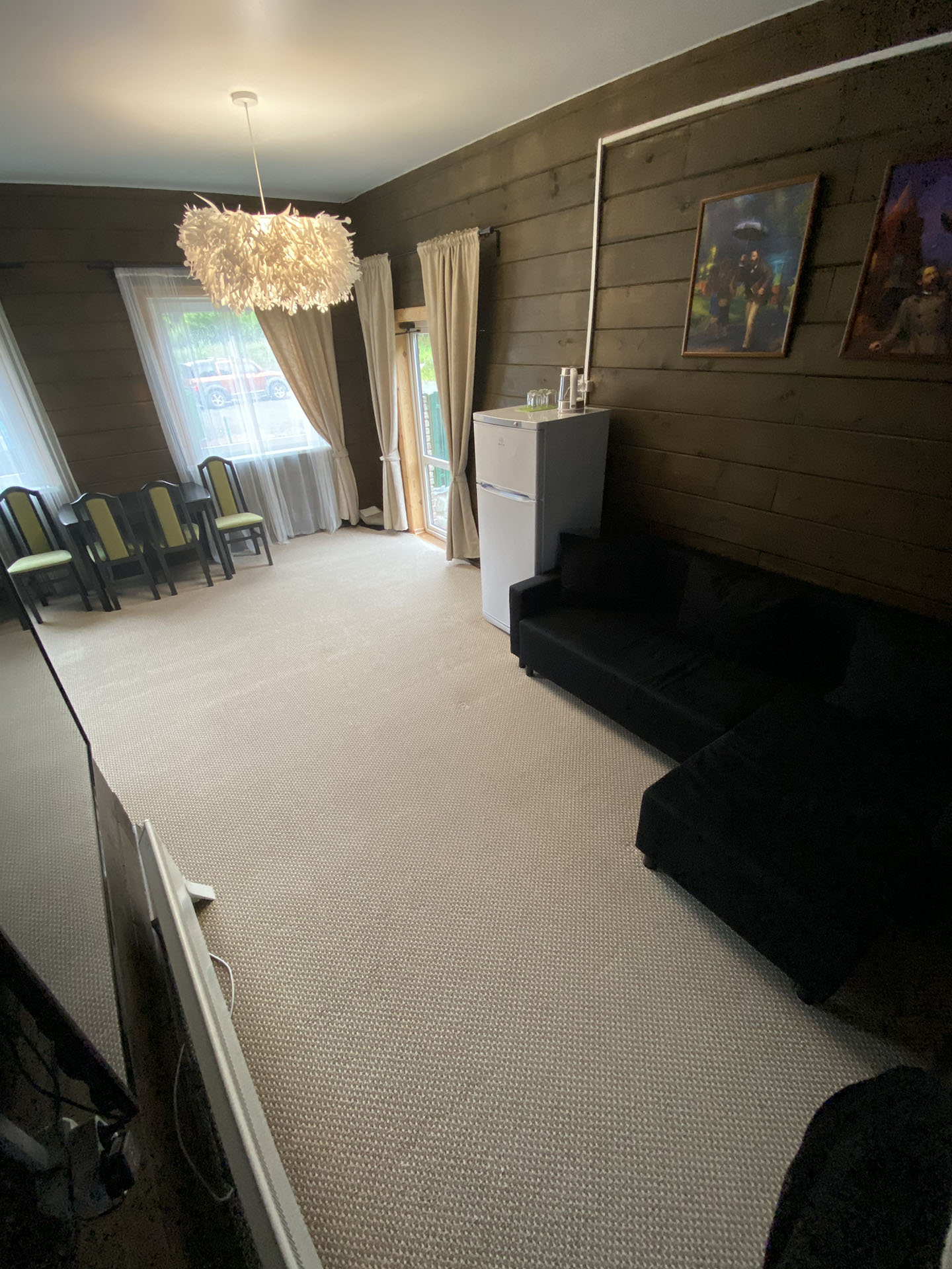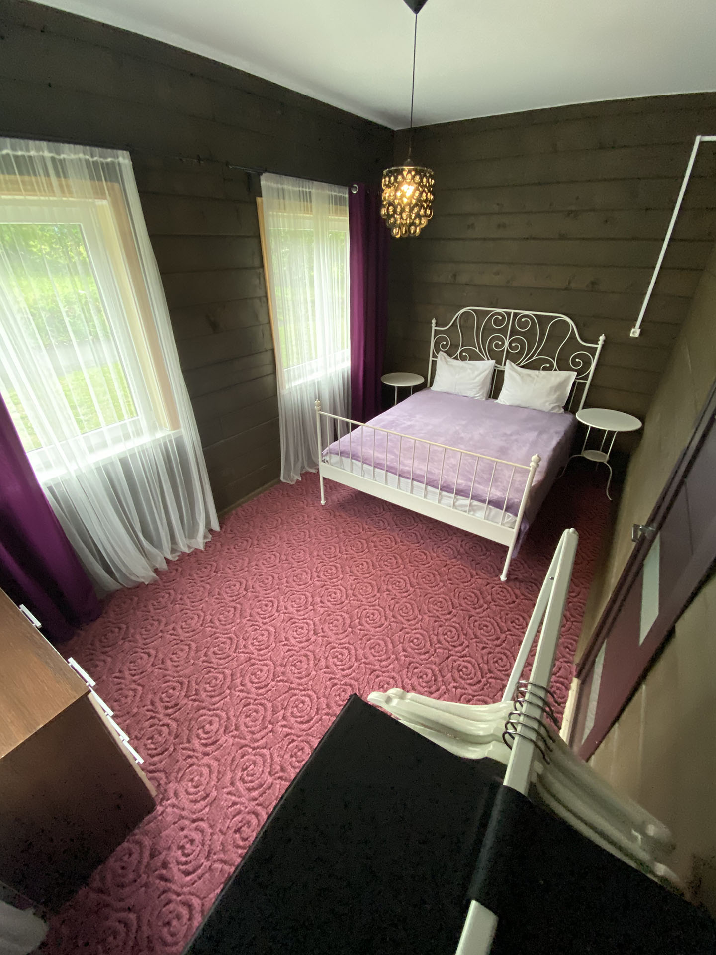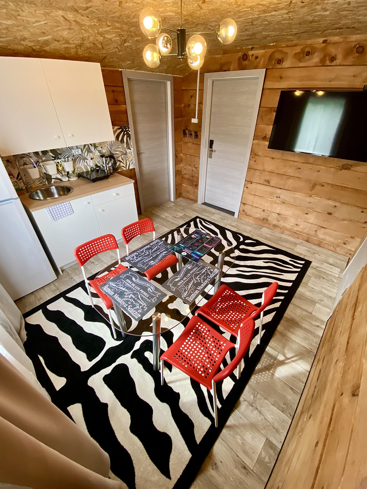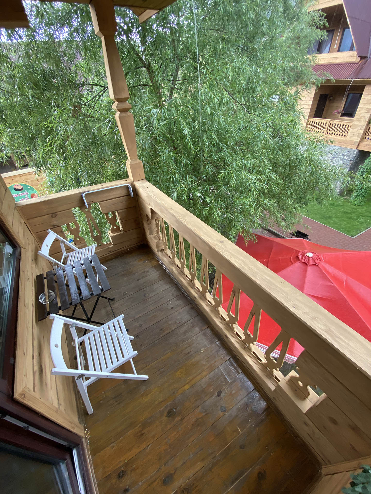 Четырехместный номер, спальня (двуспальная кровать) и зал (раскладной двухместный диван) также в номере (холодильник, чайник, микроволновая печь, обеденный стол), ванная комната (душевая кабина, раковина, унитаз, фен), тв – НТВ плюс (большой телевизор с плоским экраном), высокоскоростной Wi-Fi, собственный огороженный двор с садовой мебелью, допускается размещение с животными.
