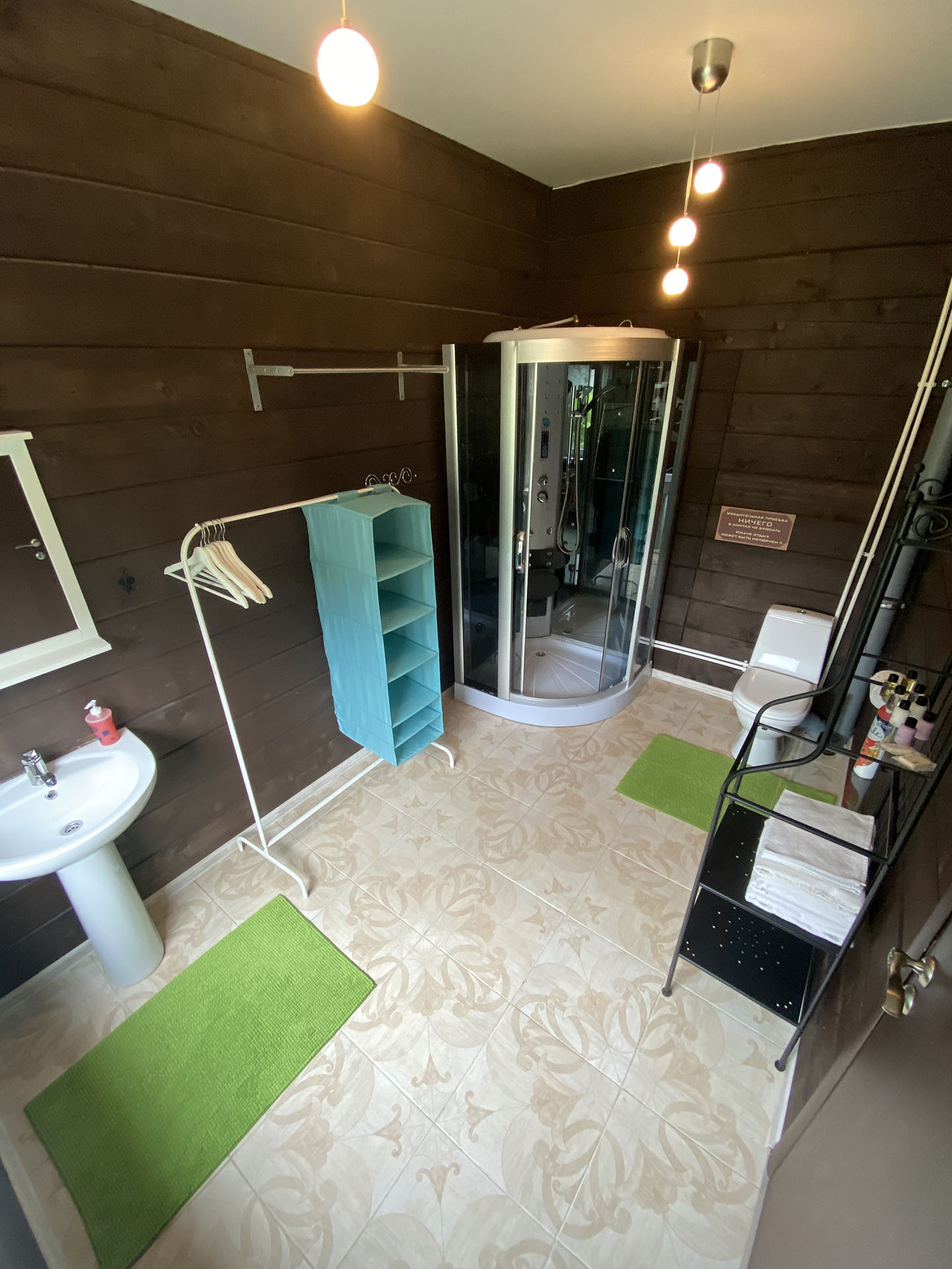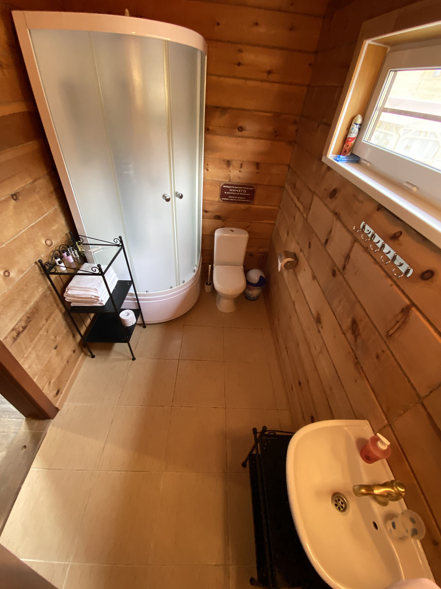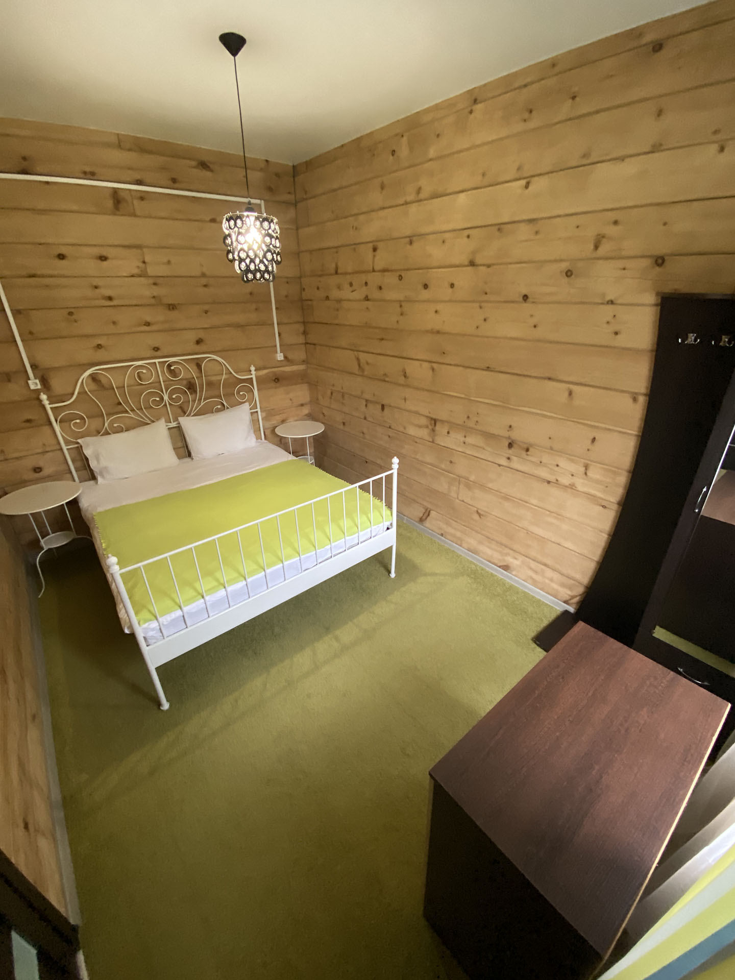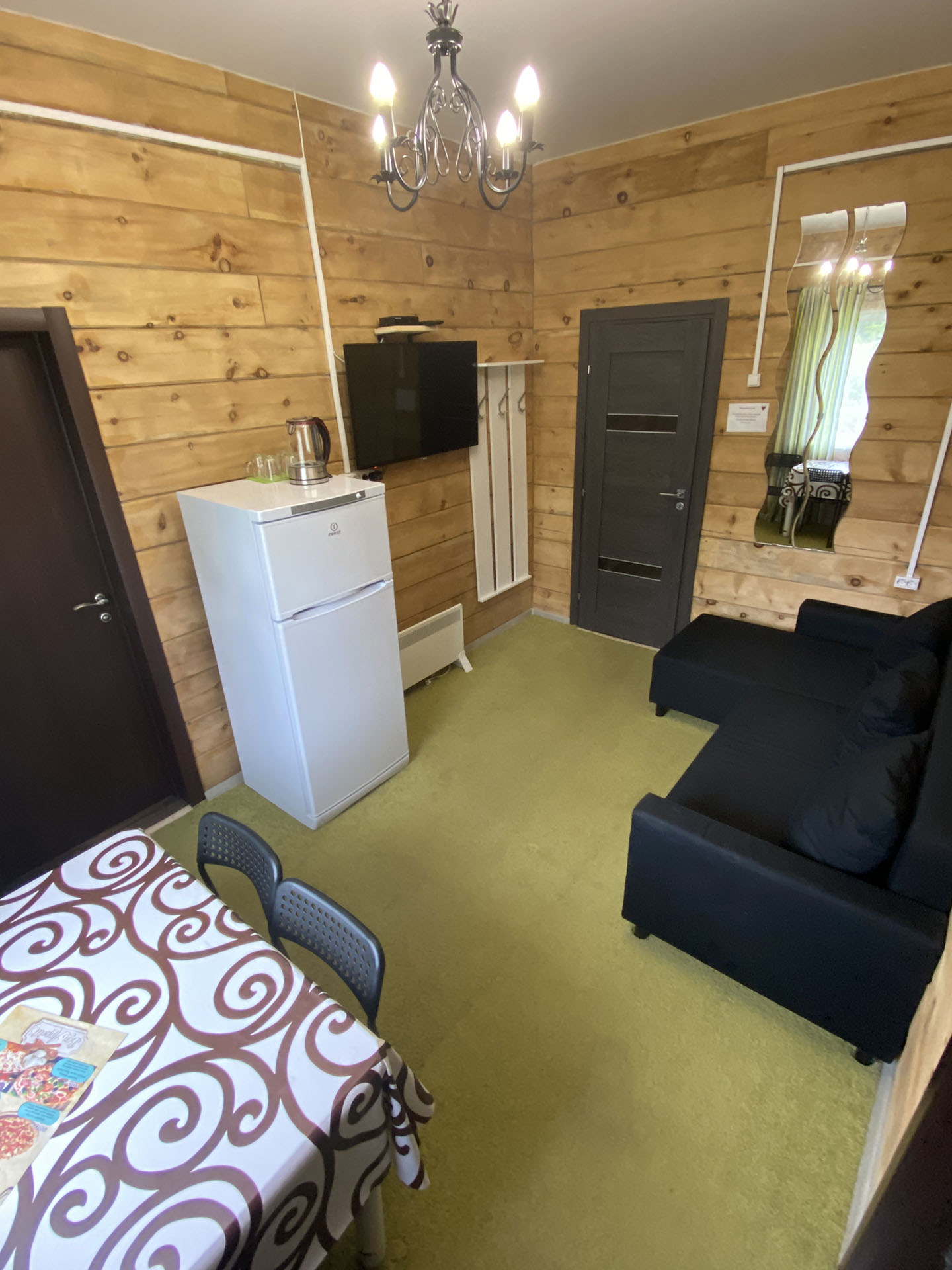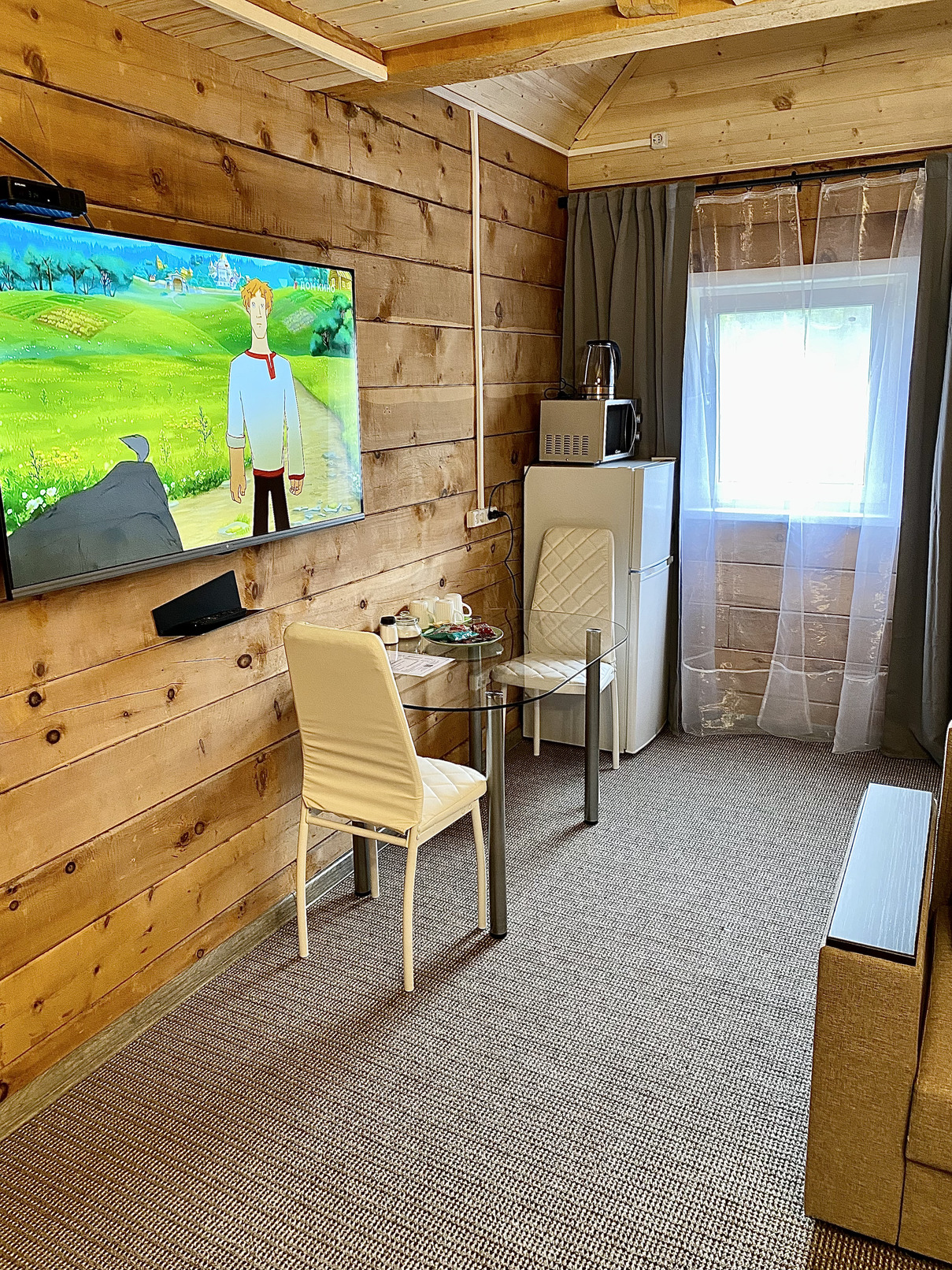 Двухместный номер: двухспальная кровать и раскладной диван, микроволновая печь, чайник, холодильник. Ванная комната (душевая кабина, раковина, унитаз, фен), тв – НТВ плюс (большой телевизор с плоским экраном), высокоскоростной Wi-Fi.