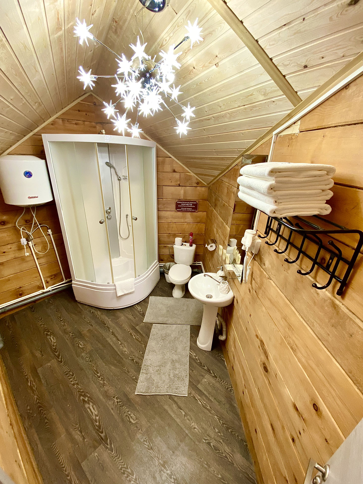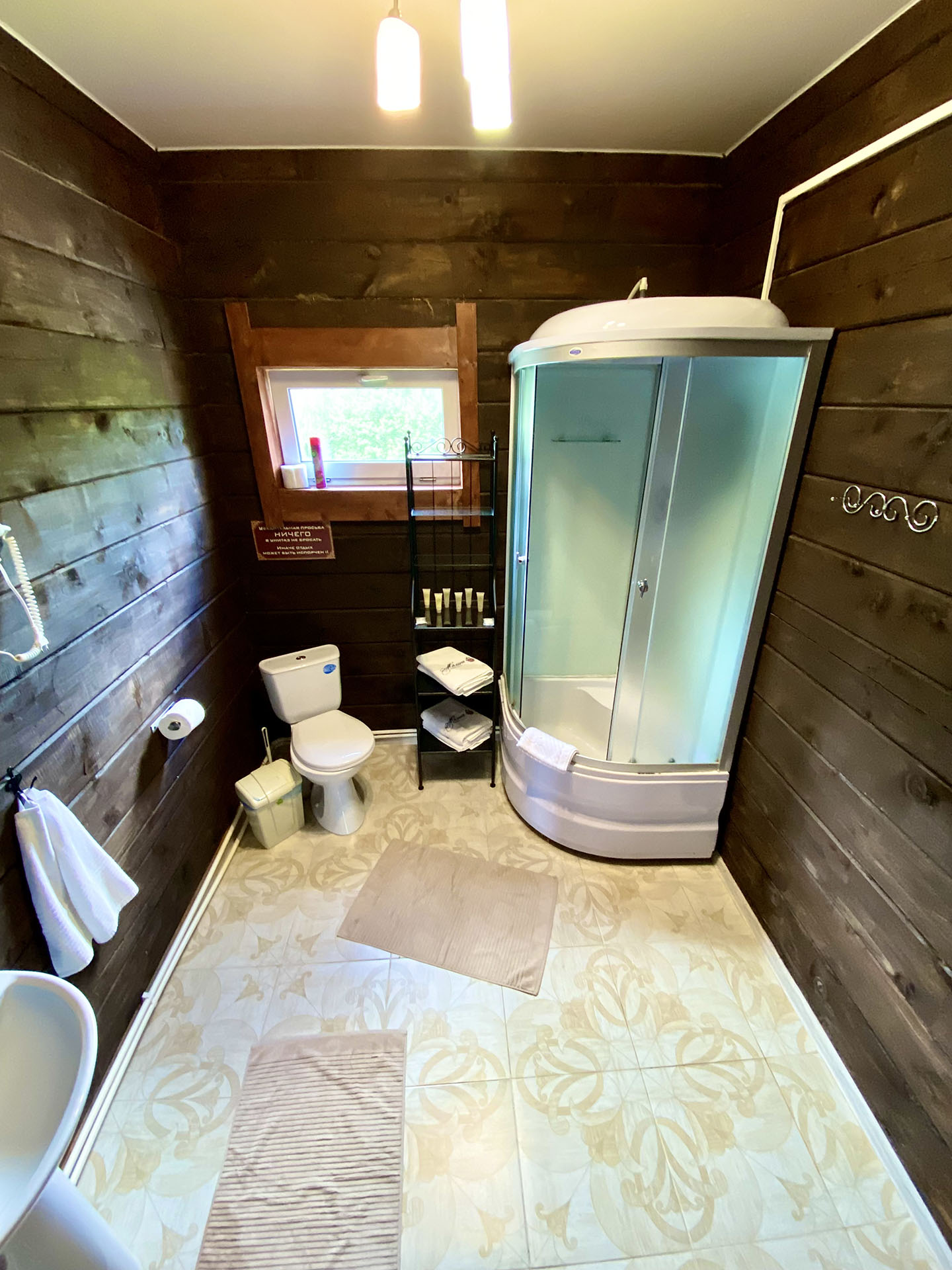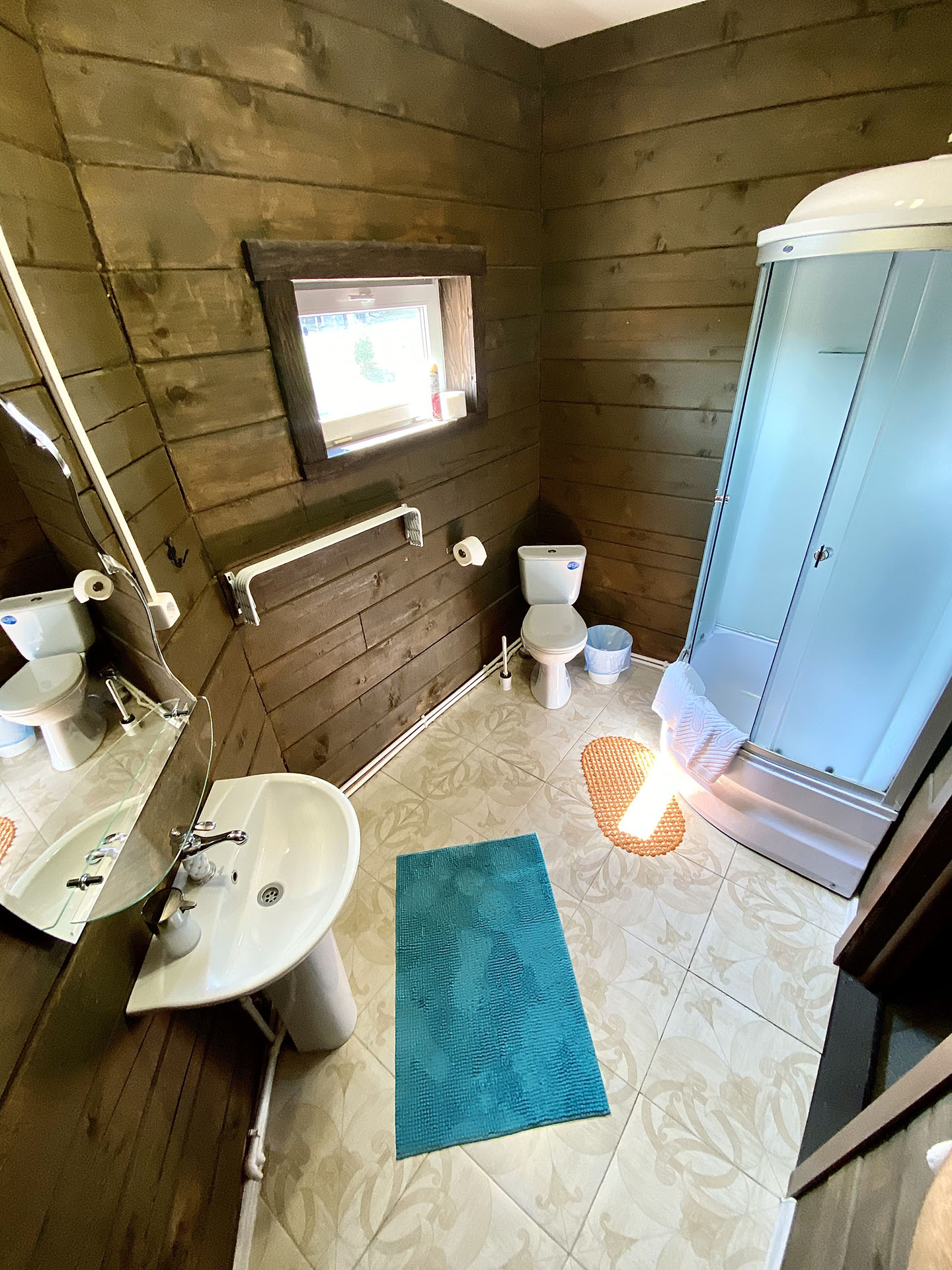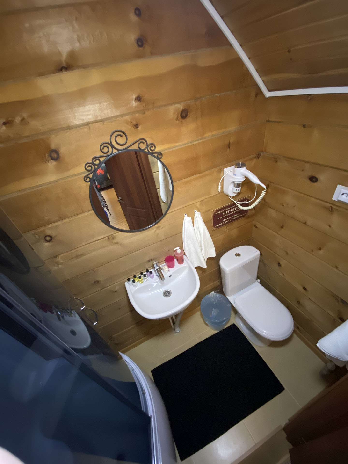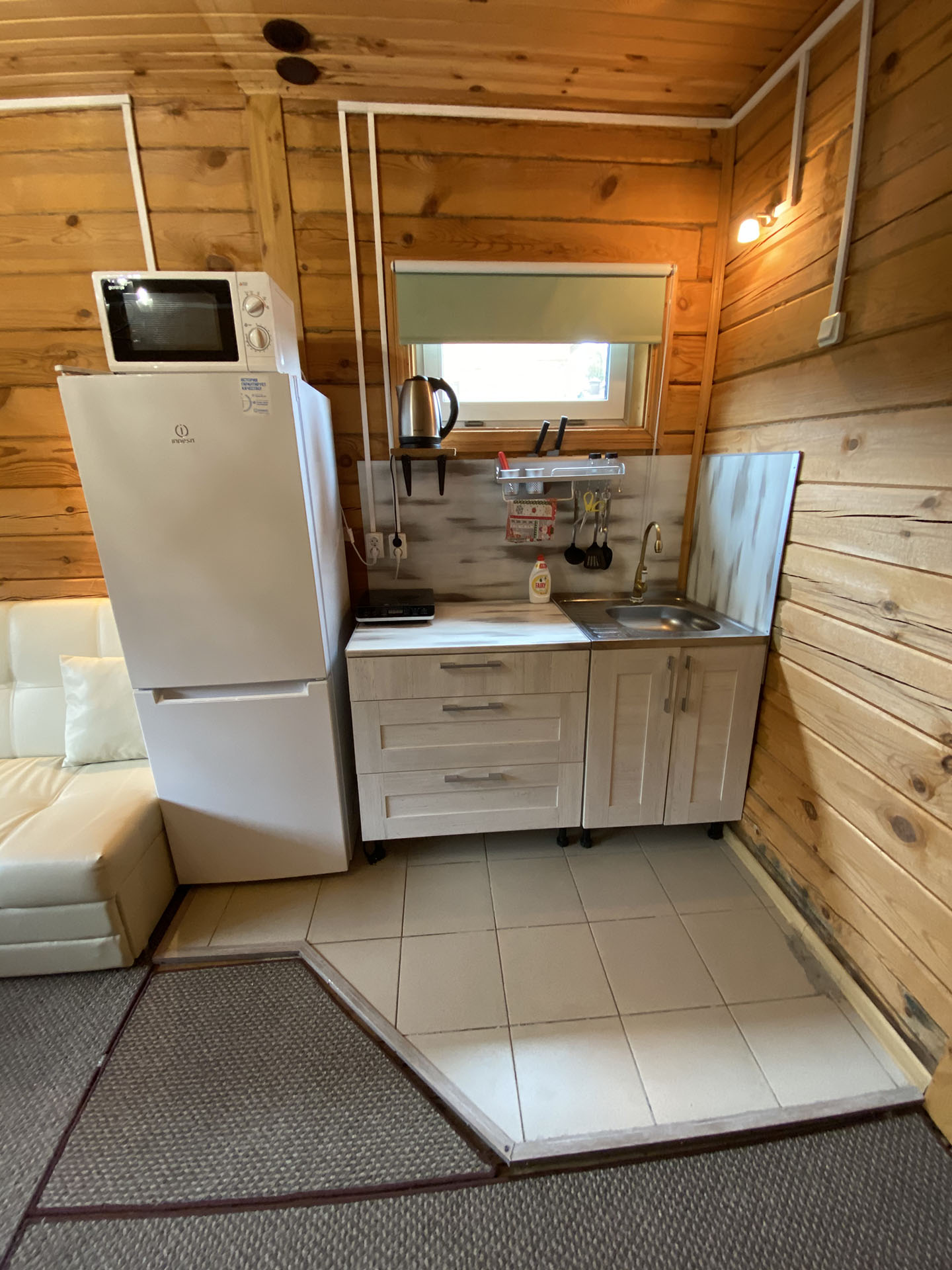 Двухместный номер: двухспальная кровать и раскладной диван, микроволновая печь, чайник, холодильник. Ванная комната (душевая кабина, раковина, унитаз, фен), тв – НТВ плюс (большой телевизор с плоским экраном), высокоскоростной Wi-Fi.